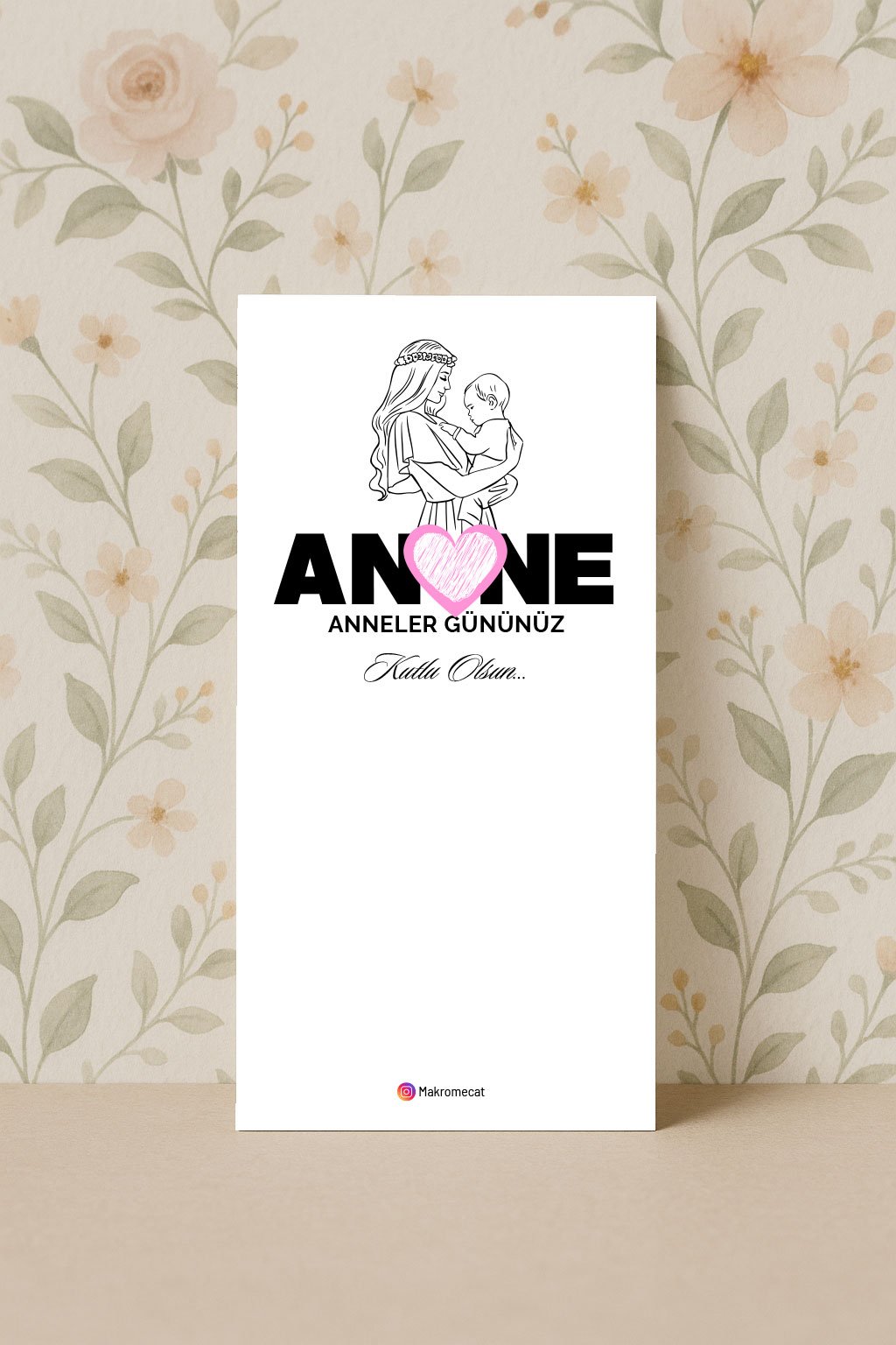 Anne ve çocuk illüstrasyonu ile sevgi temasını sade biçimde yansıtan anneler günü kartı.