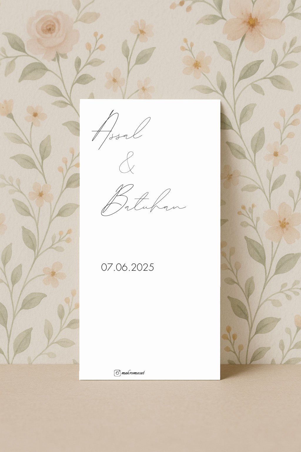 İnce el yazısı detaylarıyla modern minimalist tasarım, düğün veya nişan konseptleri için ideal.